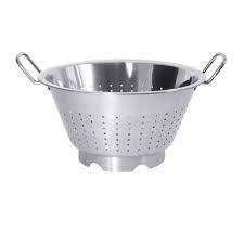 Дуршлаг с двумя ручками. Полностью выполнен из нержавеющей стали. Предназначен для отделения жидкости после варки круп, макаронных изделий и пр. Также может использоваться для промывания ягод, грибов, фруктов и овощей. Объем 10 л.