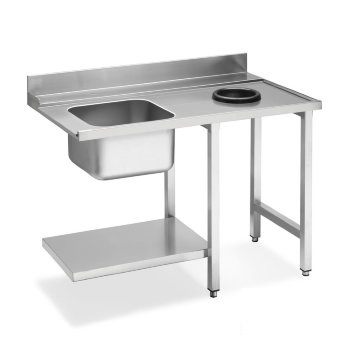 Стол с мойкой и отверстием для слива для посудомоечных машин купольного типа, соединение справа. Нержавеющая сталь, 1200x720x821,5  мм, ножки регулируются по высоте