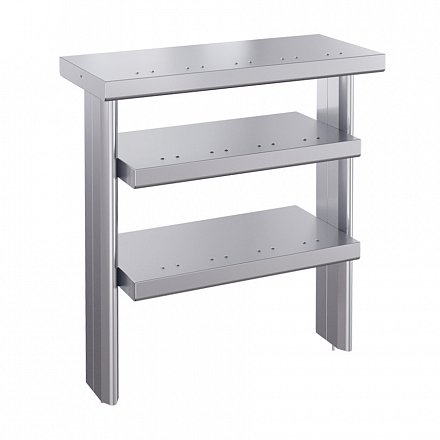 Полки выполнены из пищевой нержавеющей стали, что значительно упрощает санитарно-гигиеническую обработку изделий.