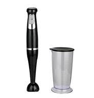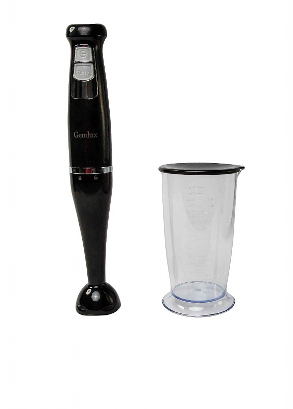 Блендер погружной, 1 скорость (13500 об/мин) + турбо-режим (14500 об/мин), материал корпуса - пластмасса, хромированные кнопки переключения скоростей, в комплекте: съемная насадка с 2-лопастным ножом из нерж.стали, мерный стакан объемом 700 мл с крышкой