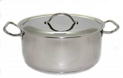 Материал кастрюли и крышки - нержавеющая сталь. Кастрюли больших емкостей АМЕТ предназначены для предприятий общественного питания и готовы к интенсивной эксплуатации, стойки к агрессивным средам и механическим повреждениям.