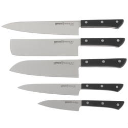 Каждый нож этой серии отличается широкой функциональностью. В комплект входят пять ножей, предназначенных для разных работ – овощной, универсальный, накири, сантоку и шеф.