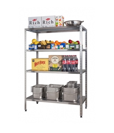 Стеллаж производственный серии «Нормал» СтПН.Стойки выполненны из нержавеющей стали. Стеллаж предназначен для размещения, складирования и хранения товаров, сырья, продуктов в торгово-выставочных залах, производственных помещениях и других объектах.