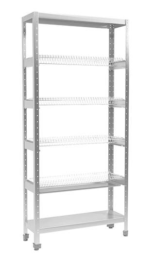 Стеллаж для тарелок ЭКОНОМ СКТК-4КЭ-2М (сетки хром., каркас оцинков разборный) 900х300х1950 мм