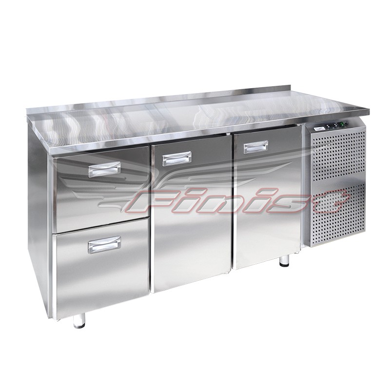 Холодильный стол выполнен из высококачественной пищевой нержавеющей стали. Столы могут производиться (выпускаться) с распашными дверями (ящиками), которые имеют надежные петли (для ящиков направляющие) с опцией доводчиков, что обеспечивает гарантированное закрытие и поддержание заданной температуры в рабочем объеме стола. Используется электрический блок управления с функцией автоматической оттайки. Передняя панель моторного отсека имеет большую площадь перфорации, что позволяет обеспечить холодильному агрегату поступление воздуха для охлаждения.