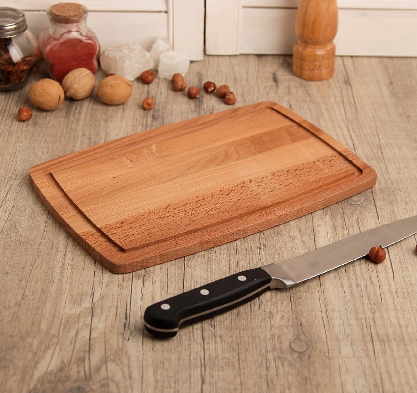 Доска разделочная малая с кровостоком 300х200 мм, бук 12мм, массив