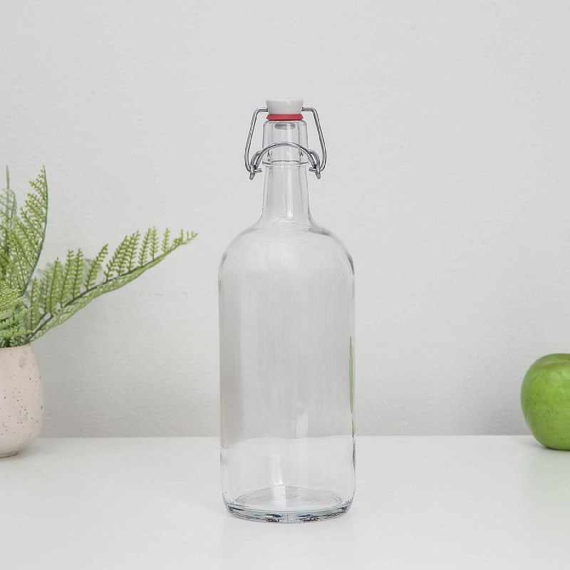 Бутылка бугельная «Бесцветная», 1 л, с пробкой