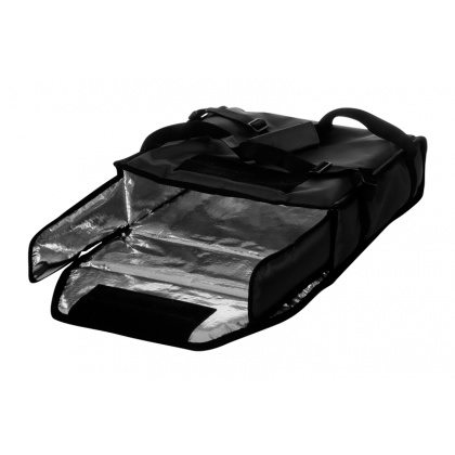 Термосумка на 2 пиццы 350х350х100 мм фольгированная средняя черная с вентиляцией