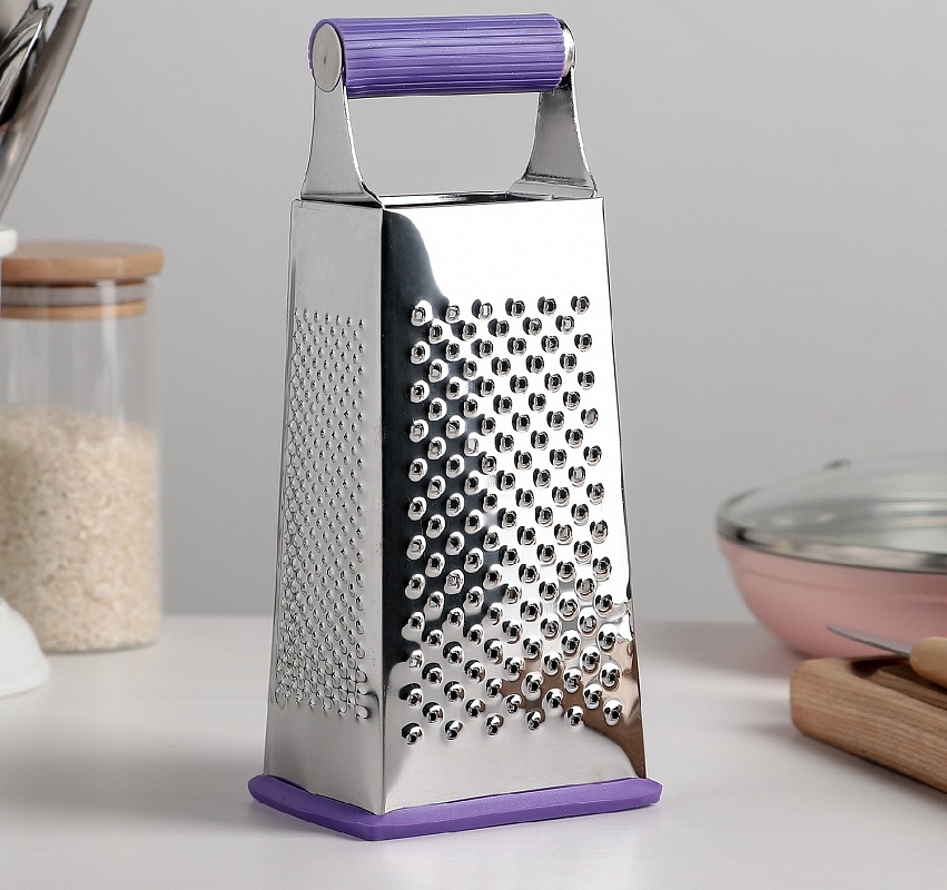 Тёрка четырёхгранная «Палитра», 10×7×21 см, прорезиненная ручка, цвет МИКС
