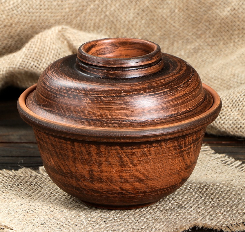 Такой горшочек — ценное приобретение для кухни, которое даёт невероятные возможности для кулинарных импровизаций. Процесс приготовления пищи в такой посуде очень прост. Изделие изготовлено вручную из керамики и прекрасно дополнит традиционный интерьер русской кухни. Удобные ручки позволят без труда достать блюдо из духовки.