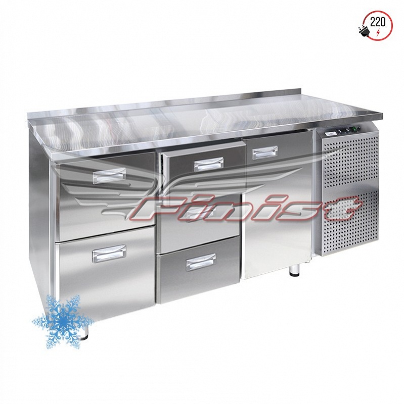 Низкотемпературный холодильный стол выполнен из высококачественной пищевой нержавеющей стали. Столы могут производиться (выпускаться) с распашными дверями (ящиками), которые имеют надежные петли (для ящиков направляющие) с опцией доводчиков, что обеспечивает гарантированное закрытие и поддержание заданной температуры в рабочем объеме стола.   Передняя панель моторного отсека имеет большую площадь перфорации, что позволяет обеспечить холодильному агрегату поступление воздуха для охлаждения.