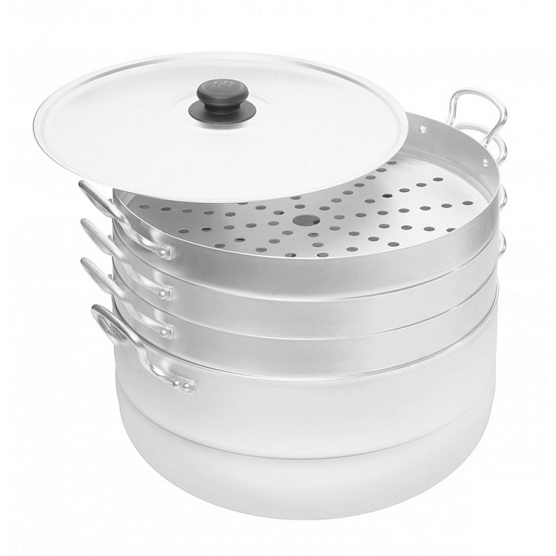 Многоярусный казан предназначен для приготовления вкусных мантов на пару. Инструмент состоит из нескольких отделений: в нижнее заливается вода, а сверху укладываются продукты. Благодаря принципу водяной бани блюдо получается диетическим, а пища сохраняет все полезные свойства.