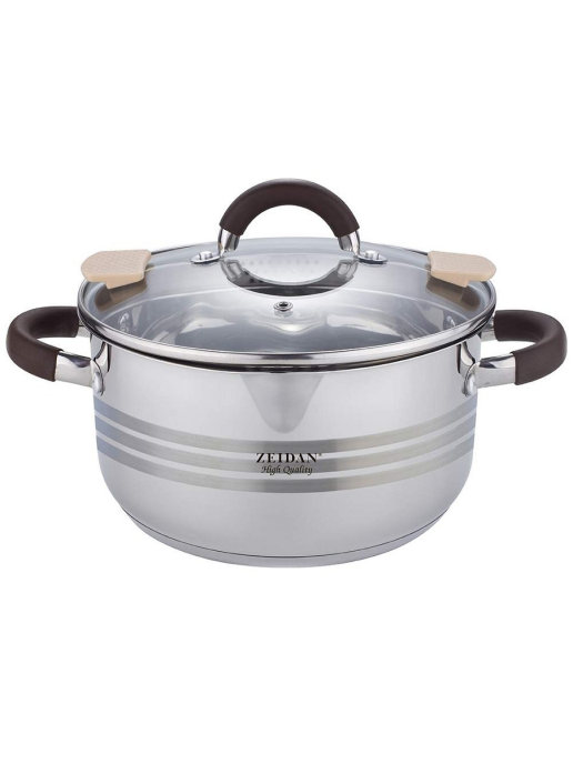Кастрюля 22 см, 5,0 литра - изготовлена из высококачественной нержавеющей стали, экологически чистого, долговечного материала, который чрезвычайно устойчив к коррозии и надолго сохраняет свои функциональные свойства. 3-ти степовое капсулированное дно позволяет готовить с минимальным количеством воды и жира, или же совсем без них. Комбинированная полировка снаружи, матовая полировка внутри, шкала литража, стеклянная крышка со сливом. Подходит для всех видов плит, включая индукционную.