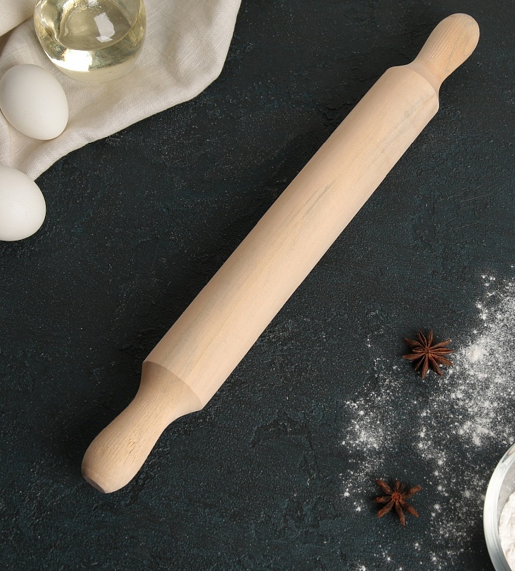 Скалка деревянная Доляна, 42 см, с ручками
