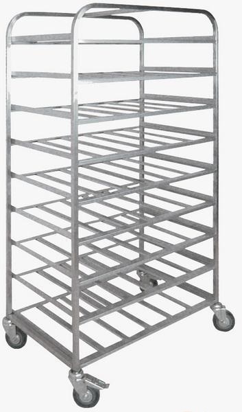 Стеллаж используются для сбора и транспортировки подносов с грязной посудой. Имеет 9 уровней. Вместимость 9 подносов.